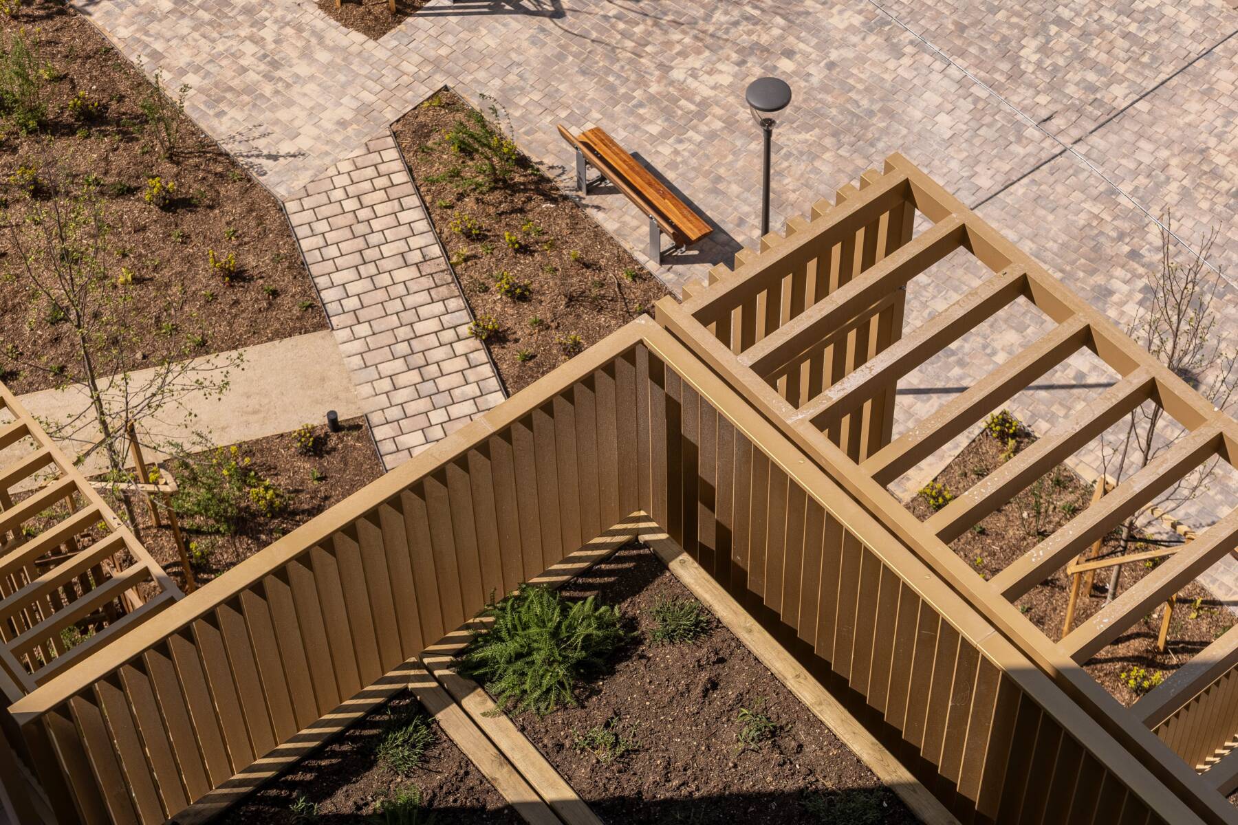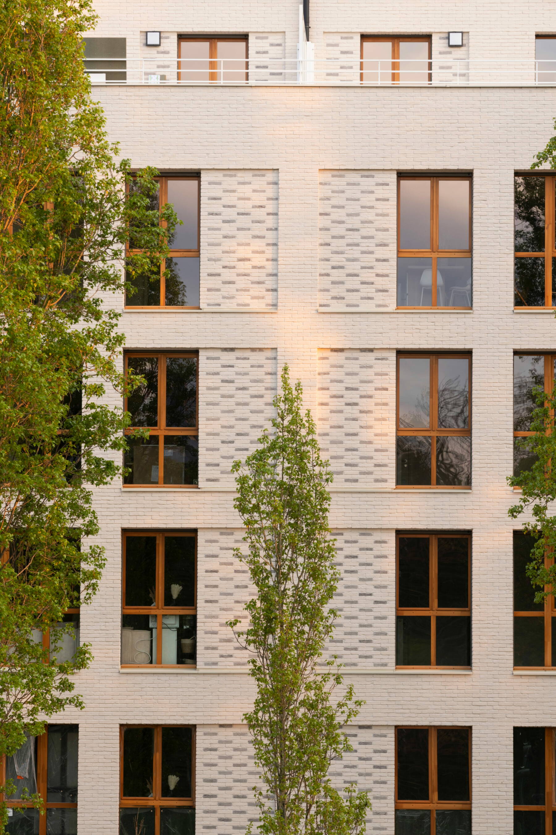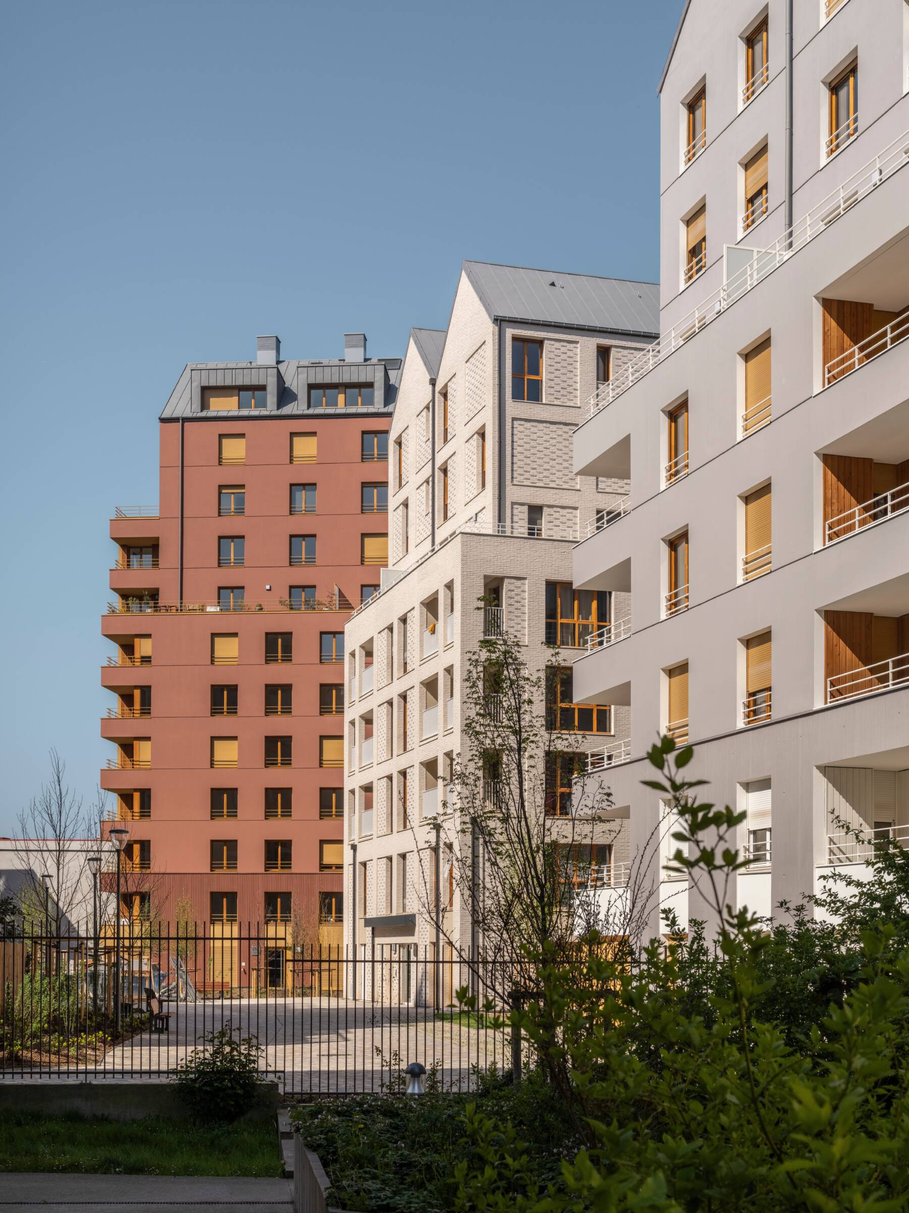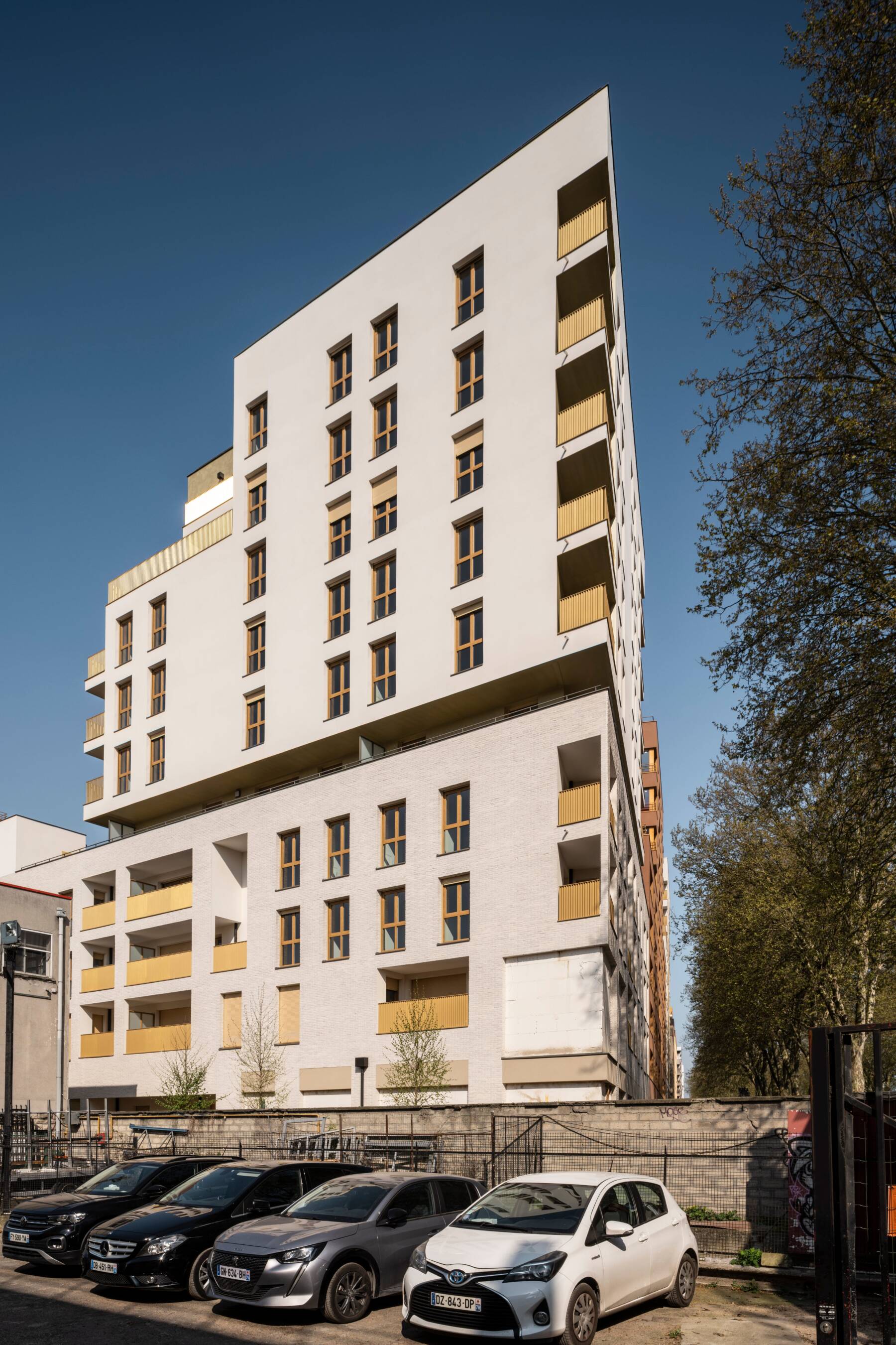 Label BiodivercitySur cet ancien site industriel situé le long du canal de L’Ourcq, le projet initié dans son Plan Masse par l’agence ANMA s’inscrit à la fois dans une modernité bienveillante tout en respectant l’histoire du lieu. A l’image des anciens ateliers du quartier, les façades sont recouvertes de briques tramées et offrent des ouvertures généreuses sur le canal. Tels les anciens entrepôts industriels, les toitures en pente rappellent des sheds. Les bâtiments aux gabarits R+9 sur rue, redescendent en douceur vers le jardin en cœur d’îlot, proposant une cascade de terrasses plantées panoramiques offrant des vues exceptionnelles sur le canal. Ce projet est réalisé en collaboration avec l’agence Pascal Gontier.